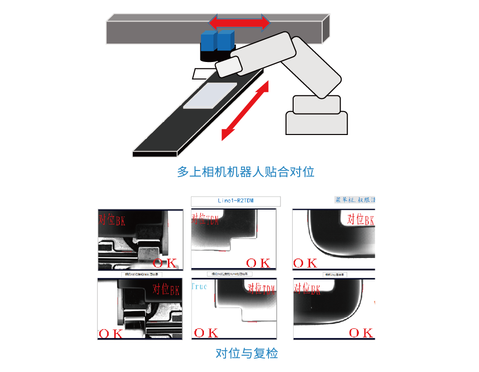 3C生產(chǎn)中執(zhí)行機構(gòu)種類多,非標(biāo)對位類型多,對位誤差難以解耦。我司的Kinovision視覺應(yīng)用平臺支持多種通訊協(xié)議,支持標(biāo)準(zhǔn)或非標(biāo)執(zhí)行機構(gòu),包括機器人、UVW、XYθ模組等,具備腳本編程,具有極大的靈活性于高度的適應(yīng)性。其特有的誤差驗證工具和誤差排除標(biāo)準(zhǔn)流程,滿足單平移對位、單相機雙工位對位等非標(biāo)對位需求,高精度地滿足客戶誤差解耦的需求。